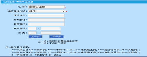 正确输入个人相关信息(红星号标记为必填项),点击“下一步”打开注册-聘用单位信息页面,如下图10所示。