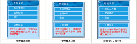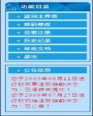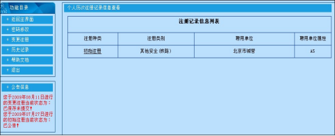 系统自动根据用户注册记录信息状态对用户进行相应的提示和提醒。进入个人信息注册和管理页面后,查看“功能目录”下方的公告信息窗口,如图32。