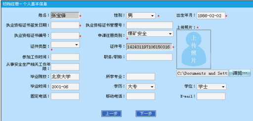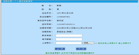 选择注册机构(选择后,注册信息由该注册机构进行初审)点击“下一步”,进入个人基本信息录入页面。如图9所示。
