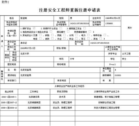 所有工作经历添加完成后,点击“预览”可看到将要上报给注册机构的注册申请表,如图12。确认无误后,按照提示双面打印后,点击“上报”,申请人所填写的信息将提交给省级、部委或者中央企业的注册管理机构进行初审。
