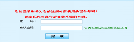 点击首页中“设置密码”链接,进入身份验证页面如图2。按照提示,用户输入验证信息后,即可进行密码初始化设定,如图3。今后再登陆时如果忘记了登录密码,请点击图1中的“忘了密码?”即可进入密码找回,页面如图4,按照提示操作即可(此功能只限在注册信息中留存邮箱的用户),如果没有设置邮箱,用户可以联系注册机构进行查询。
